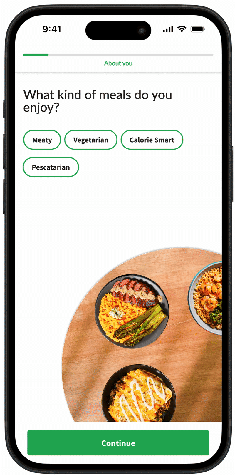 To get to the root of user needs at this stage, we conducted in-depth interviews exploring why users wanted to view or select meals before signing up. The research uncovered that the real barrier wasn’t about restricting meal choice, but about users lacking confidence in dietary and lifestyle compatibility.
