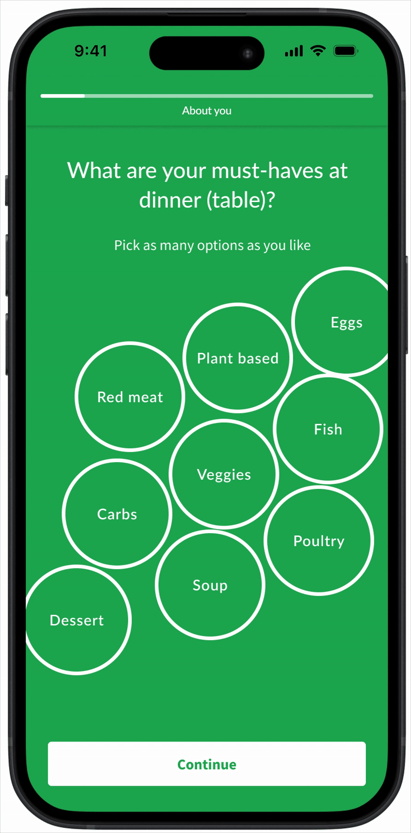 To address dietary fit, we avoided overwhelming users with excessive information. Instead, we refined our approach by offering specific, optional dietary selections, keeping the experience simple and relevant.