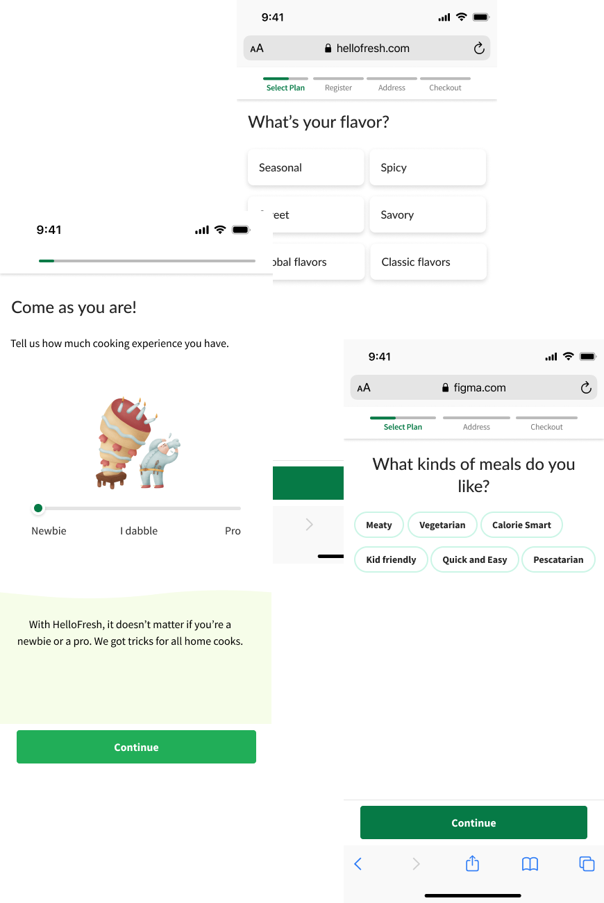 This insight reframed the problem: the goal wasn’t to control meal selection, but to help users feel confident that HelloFresh fits their lifestyle early in their journey.