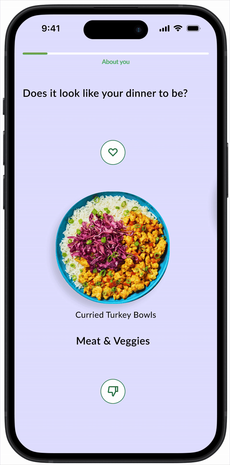 outcome. A more interactive and reassuring prospect experience that showcases how HelloFresh fits user needs—while laying the foundation for long-term personalization.